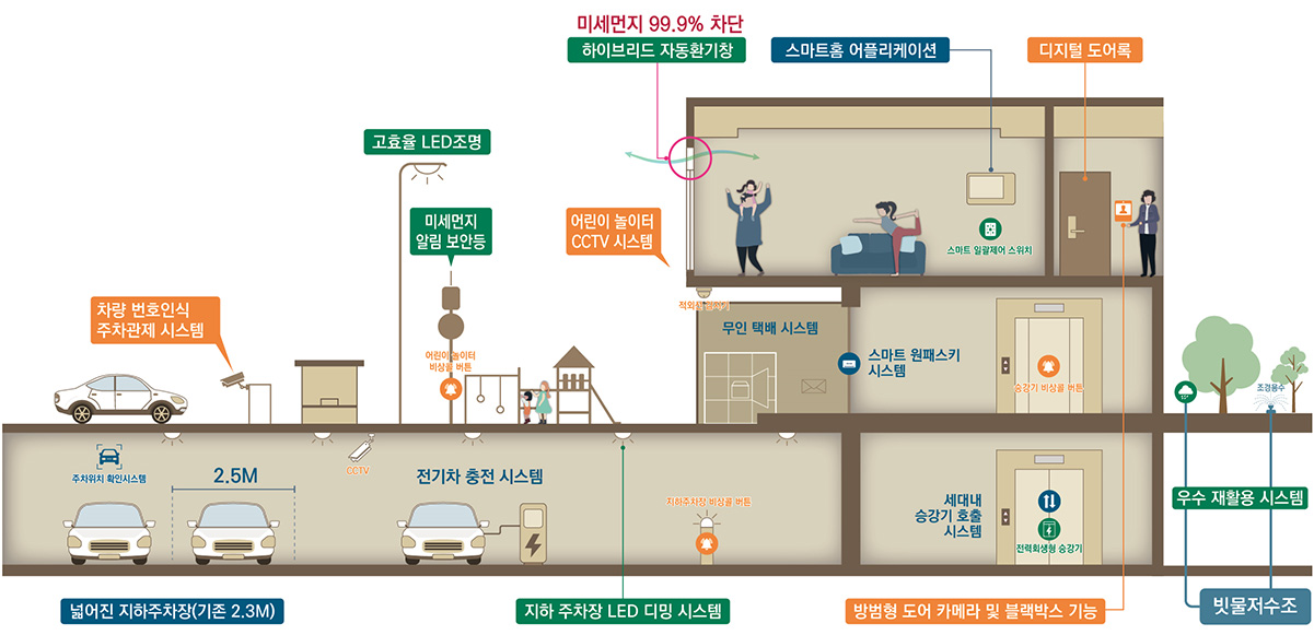 앞서가는 시스템 과학이 단지 곳곳에 배치되어